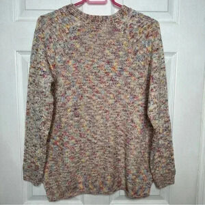 Time And True Cable Knit Sweater V-Neck White/Multicoloured Size Large