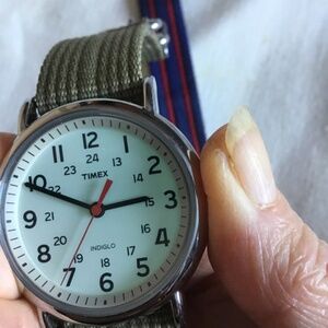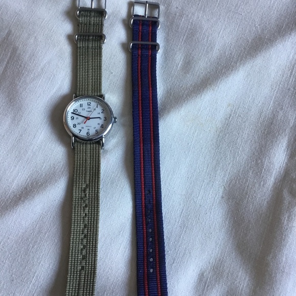 Timex Indiglo watch with two watch bands. Silver hardware. Indigo light for nighttime. 38mm face.