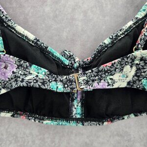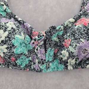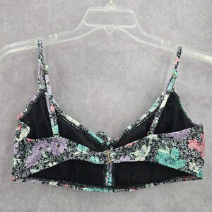 Time and Tru Black Floral Padded Adjustable Strap Bikini Top Swimwear Small
