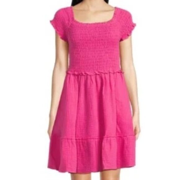 Time and Tru Women Smocked Double Cloth Dress Size XS 0-2, Pink