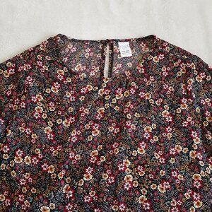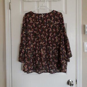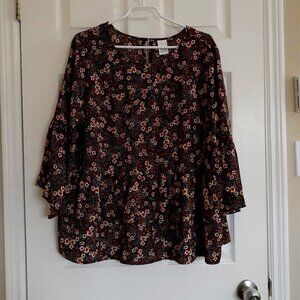Time and Tru Women's XXL (20) Black Floral Tiered Peplum 3/4 Bell Sleeve Blouse