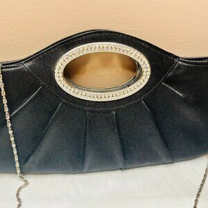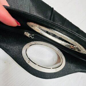 Discover the epitome of vintage charm with our black satin handbag, now available online! This classic piece from D Fusion is in excellent condition, adorned with dazzling faux diamonds and featuring a sleek design perfect for any special occasion.