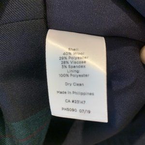 Classic style - round neck with slightly fitted waist, 3/4 sleeve with ruffle detail. Fully lined wool blend Navy/black/green plaid fabric. Never worn - in perfect as new condition. A beautiful dress that will stand the test of time.