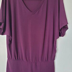 V-neck Oversized TOP, drop shoulder design measured 14" from V-neck to sleeve opening; sleeve opening: 16"; length of top: neck to top of waist band 20"; waist band 6.5" will sit on hip