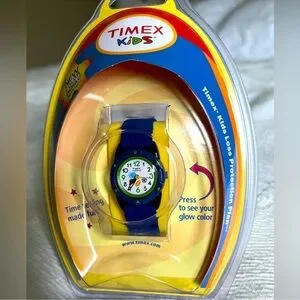 Blue elastic fabric kids watch. New, never used, in unopened box.