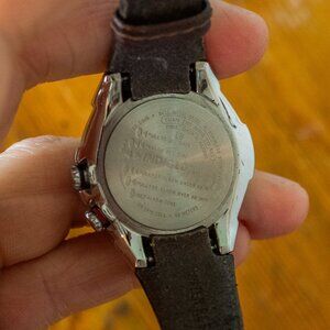 Fully functioning 2004 Timex Expedition Easy Set Analog Alarm with Indiglo. Original leather strap. 36mm case diameter. A real favourite in the Timex rare catalog.