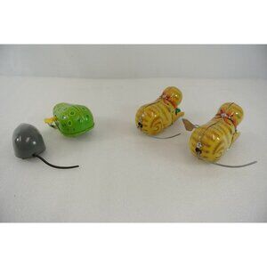Tin Litho Toys Lot of 4 Wind-Up Mouse Frog Cats Comes with Key Made in China