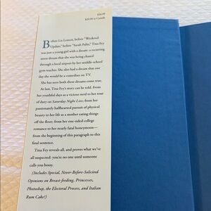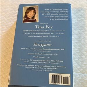 Enjoy the wit and humor of Tina Fey in her book 'Bossypants'. This engaging read features a blue cover with a captivating image of the author.