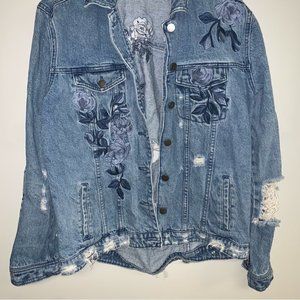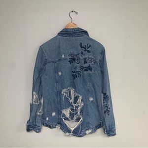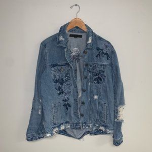 Tinsel Jean Jacket Size Medium Medium Wash Denim Distressed Embroidered Floral