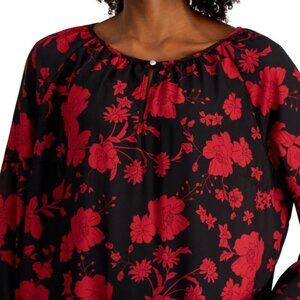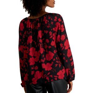 Tinsel Petite XS Black & Red Floral Front-Keyhole Blouson-Sleeve Blouse/Top NWT