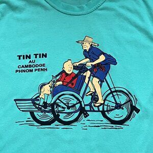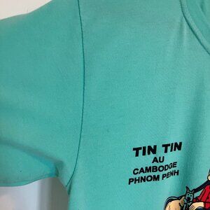 Tintin Green T-Shirt Les Aventures Tintin au Cambodge Phnom Penh Top Size Med