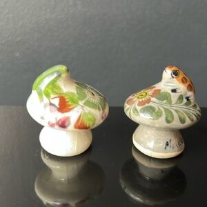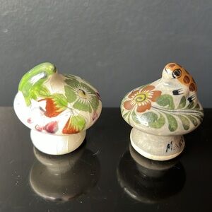 Tiny Ceramic Toadstool Pair Toad Frog Mushroom Tonala Mexico Cute Gift Vintage