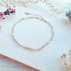 ♥ dainty bracelet with mini ethiopian opal (3.2x2.5mm) and strawberry quartz (2mm) with beautiful 14k gold-filled wire wrap detail