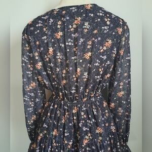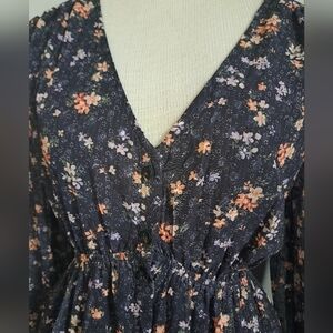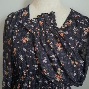 Tiny floral tiered MAXI dress long sleeves ruffle cuff button up Shabby Aakaa S