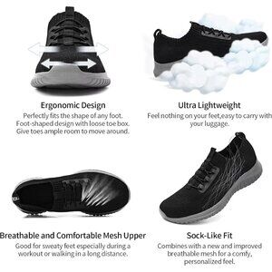 Tiosebon Womens Black Slip On Walking Lightweight Running Memory Foam Sneakers