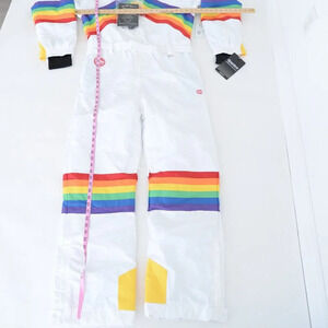 Stay warm, chic, and playful on slopes this season! The Tipsy Eleves Sunrise Shredder Snow Suit is perfect for showing off your style with its vibrant rainbow color scheme. Feel free to shred the mountain in this shred-ready suit!