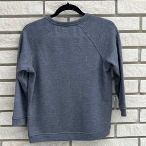 3/4 length sleeve, crew neck sweatshirt from Canadian brand Titika. Beautiful feminine sweatshirt with 3/4 length sleeves and cutout pattern with sequin accents along front. The cutouts are truly cut, you would see a pop of colour from a tank underneath or pops of abs if you are rocking just a sports bra. Soft interior.