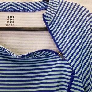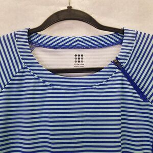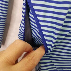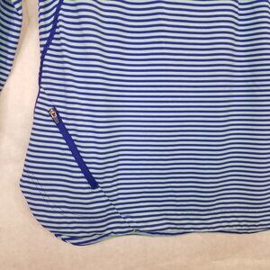 Title Nine Striped Sunblaster Top Women's M UPF Long Sleeve Teal White Scoop Hem