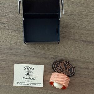 Celebrate with Tito's 25th Anniversary copper bottle topper. Perfect for adding a touch of elegance to your collection.