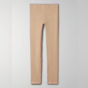 And more streamlined than ever. These are seamless high-rise leggings designed for an extra-smooth silhouette. They're made with TnaBODY™ — a compressive, body-hugging fabric with sleek, seamless comfort. This version has a rib-knit texture and comes in a dimensional acid wash.