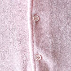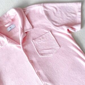 This is a short-sleeve button up. It's made from cozy, textural French terry fleece.