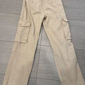 Used a couple times and a little mark on the leg, but could be removed. Great condition besides that and super stylish! Beige and high waisted.