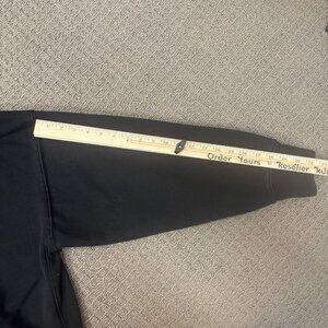Has some bleach stain marks on the back and bottom hem, has some piling throughout on the inside of the hoodie and loose threads on the drawcord. Please view photos for details and measurements