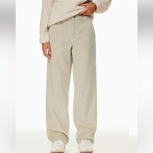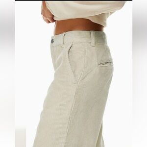 These are mid-rise wide-leg pants with back welt pockets. They're made with ultra-plush and textural corduroy from France.
