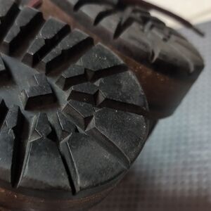 Rugged dark brown leather boots. Lace-up design. Ideal for versatile wear.