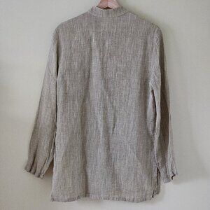 Tobasco Top Women 46 / US 10 Olive LS Mandarine Collar Buttons Linen Blend Slits