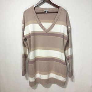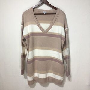 Tobi Beige/Tan Striped Knit V-Neck Sweater Dress With Pockets Sz S