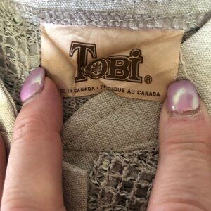 Tobi Extra Long Button Down Oatmeal w/Black Loose Knit Cardigan Size Small
