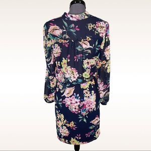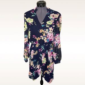 Tobi Floral Mini V Neck Curved Hem Split Middle Hem Mini Dress Fitted