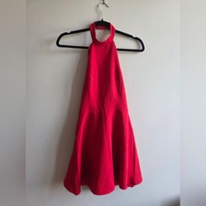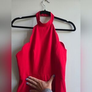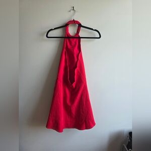 This stylish red halter mini dress is truly captivating. Its design is undoubtedly perfect for a variety of occasions. The color itself is striking and vibrant, sure to make a statement. The halter neckline adds a touch of elegance and sophistication to the overall look. This dress would be a wonderful addition to any wardrobe.