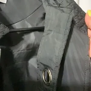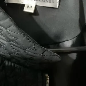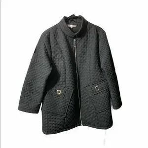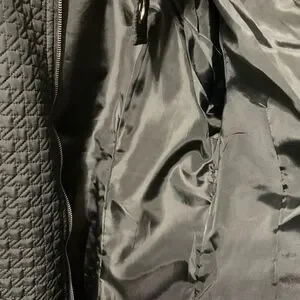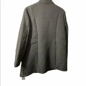 Today’s Designer quilted jacket in amazing used condition next to no wear. Has a quilted design with faux pockets in front which is accented with silver hardware. There is a zipper in front for closure and is made with lighter material perfect for fall or spring.