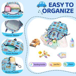 Spacious & Versatile Main Compartment: Designed for both school and outings, the roomy main compartment fits books, notebooks, or baby essentials (diapers, bottles, pacifiers, toys). Its water-resistant polyester material protects essentials like diapers, bottles, and school supplies from light spills or drizzles