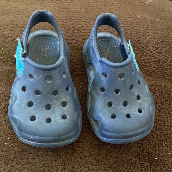 Blue toddler crocs size 6T. So cute but just don’t fit my son anymore!