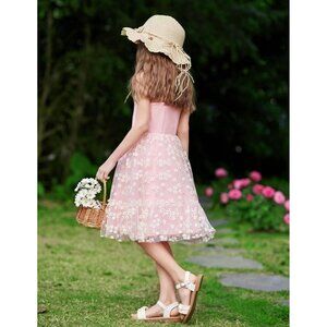 🆕Toddler Girls Pink Daisy Tulle Dress Rainbow Tutu Birthday Princess 2-6T