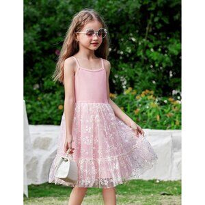 Little Girls Casual Dress: Spaghetti straps, pleated tulle skirt, ruffle hem, elastic waist, and knee-length style make your baby girls so sweet and cute.