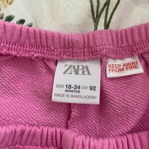 Size 18-24 months from Zara. Pink cotton jumper. Straps were sewn to make them a bit shorter but the thread can be undone. No stains.