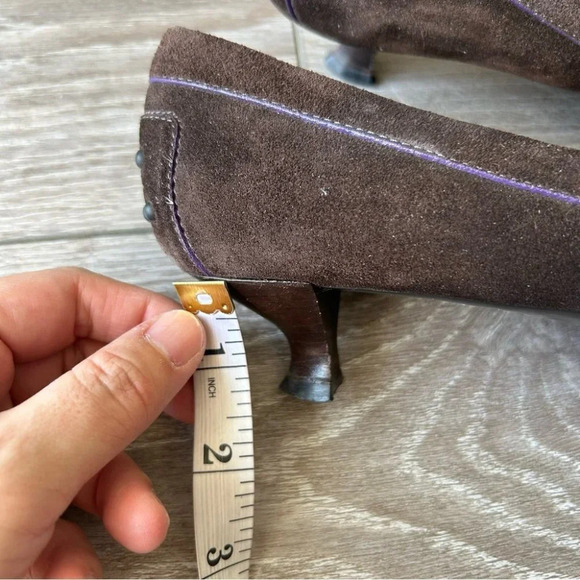 Tod’s Brown Suede Leather Purple Trim Studded Kitten Heel Pump