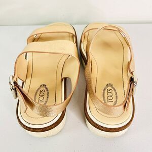 Tod's Rose Gold Genuine Leather Strappy Sandals