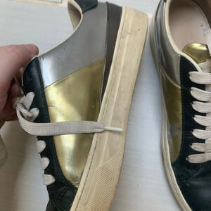 Tod's Silver Gold Black Metallic Patent Leather Sneaker 39.5