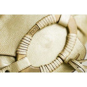 Tod's Vintage Y2K Leather Gold Tone Oval Large Buckle Shoulder Bag