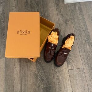 Pick up in Milton, ON or I can ship it. No returns if shipping. Brand new Tod’s loafers in beautiful brown.