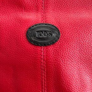 This stylish shoulder bag by Tod's showcases a bold red and black color palette, crafted from durable synthetic fabric for a modern look. Its sleek design and adjustable strap make it a versatile choice for everyday use, blending fashion with functionality effortlessly.