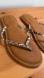 Toe Thong Sandals | Women's Brown Sandals with Black and White Straps