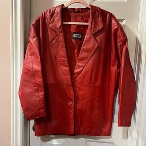 Toffs Vintage Red Genuine Leather Blazer Jacket Retro Holiday Women's Medium