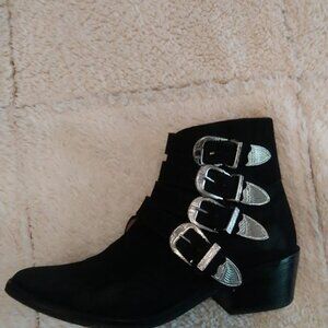 Fantastic Toga Pulla Suede embroidered Western Boots. Black with silver hardware. Leather lining and leather sole. Made in Portugal. Gently worn.