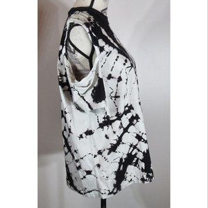 Toga Pulla Women's tie dye cold shoulder T-shirt , Black/ White, Size 38, US 2